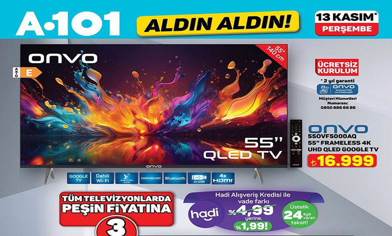 A101 4 Aralık 2025 Aldın Aldın TV Fırsatları kataloğumuzu incelemek, ONVO, TOSHIBA, HI – LEVEL…