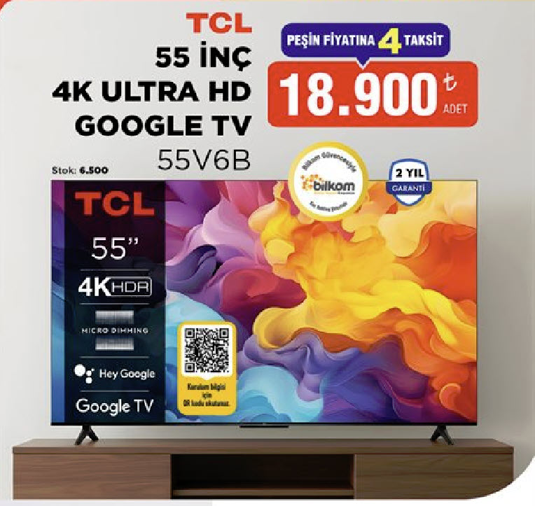 TCL 55V6B modeli de 2 yıl garanti kapsamında satışa sunuluyor.