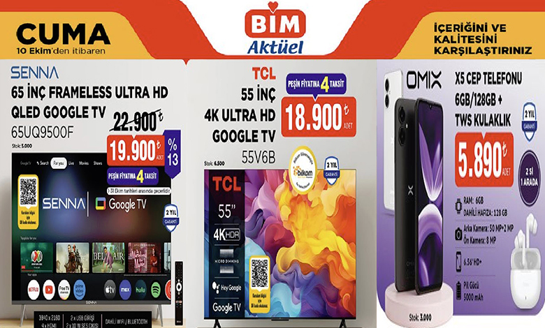 BİM 10 Ekim 2025 Aktüel Ürünleri: Uygun Fiyatlı Televizyonlar ve Akıllı Telefon Fırsatları